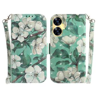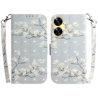 Θήκη τηλεφώνου δερμάτινη, οριζόντια, αναδιπλούμενη, με έγχρωμο 3D σχέδιο για Realme C55 (Μαγνολία)
