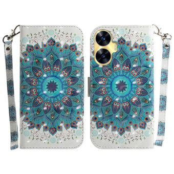 Θήκη τηλεφώνου από δέρμα με οριζόντιο άνοιγμα 3D χρωματιστή για Realme C55 (Στεφάνι Παγωνιού)