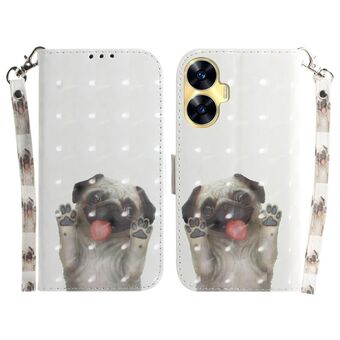 Θήκη τηλεφώνου από δέρμα με σχέδιο και αναδιπλούμενο καπάκι για Realme C55 (Pug)