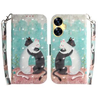 Θήκη τηλεφώνου από δέρμα με οριζόντιο άνοιγμα και έγχρωμο 3D σχέδιο για Realme C55 (Αγκαλιά Γάτας)