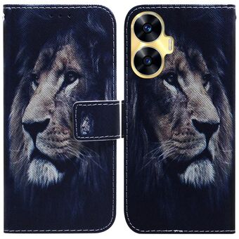 Θήκη τηλεφώνου από δέρμα με σχέδιο (λιοντάρι) για Realme C55, πολύχρωμη, τύπου flip.
