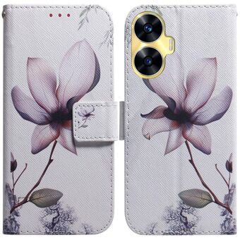 Θήκη τηλεφώνου από δέρμα με σχέδιο και αναδιπλούμενο καπάκι για Realme C55 (Μαγνολία)