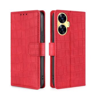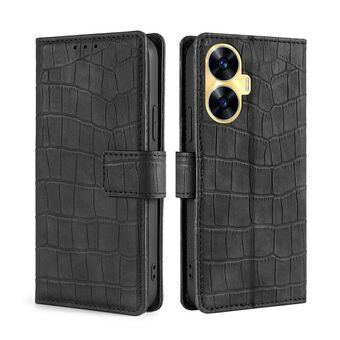 Θήκη τηλεφώνου από δέρμα με μαγνητικό κούμπωμα και υφή κροκόδειλου για Realme C55 (Μαύρο)