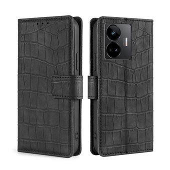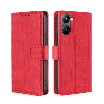 Θήκη τηλεφώνου από δέρμα με μαγνητικό κούμπωμα και υφή κροκόδειλου για Realme V30 5G / V30T (Μαύρο)