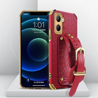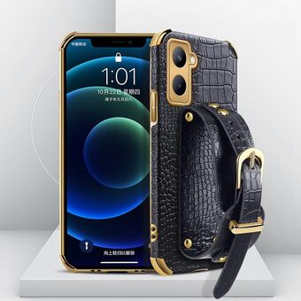 Θήκη για Realme C21Y με Επικάλυψη Ηλεκτρολυτικής Επεξεργασίας TPU με Δερμάτινο Μοτίβο Κροκόδειλου και Λουρί Καρπού (Κίτρινο)