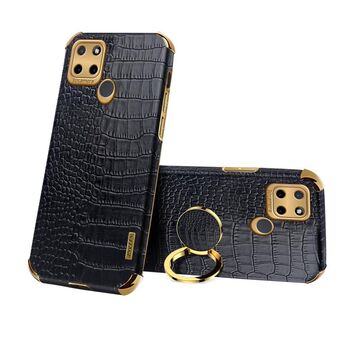 Θήκη τηλεφώνου Realme C20 XINLI με ευθείες άκρες, 6D επιμετάλλωση TPU με δακτύλιο στήριξης (Μαύρο)