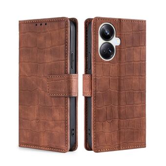 Θήκη τηλεφώνου από δέρμα με μαγνητικό κούμπωμα και υφή κροκόδειλου για Realme 10 Pro+ 5G (Καφέ)