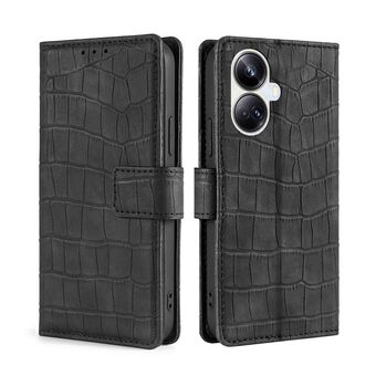Θήκη τηλεφώνου για Realme C33 6D με ηλεκτρολυτική επίστρωση, υφή κροκόδειλου με βάση στήριξης (Λευκό)