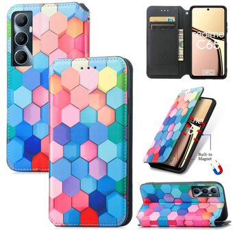 Θήκη για Realme C65 CaseNeo Πολύχρωμη Μαγνητική Δερμάτινη Θήκη Τηλεφώνου (Χρωματιστά Τετράγωνα)