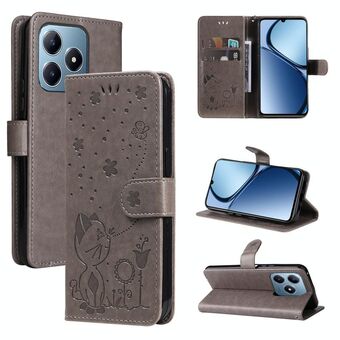 Θήκη τηλεφώνου από δέρμα με ανάγλυφο σχέδιο γάτας και μέλισσας για Realme C63 / C61 Global (Κόκκινο)