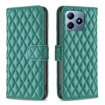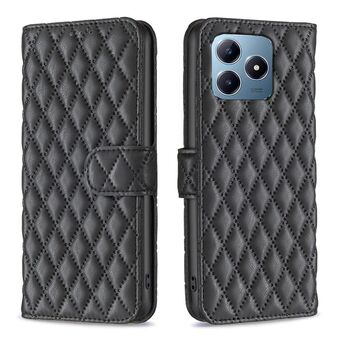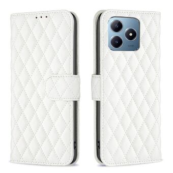 Θήκη τηλεφώνου τύπου πορτοφολιού με δερμάτινη επένδυση και σχέδιο διαμαντένιου πλέγματος για Realme C61 / C63 (Λευκό)