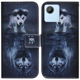 Θήκη τηλεφώνου από δέρμα με έγχρωμο σχέδιο για Realme C30 (Λύκος και Σκύλος)
