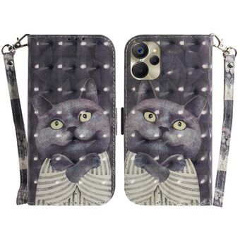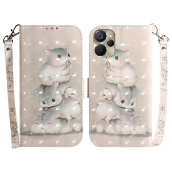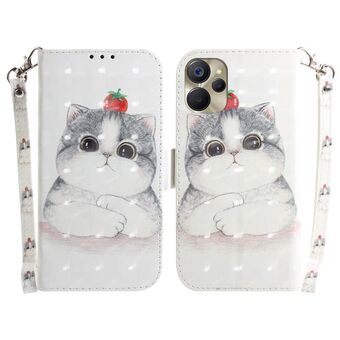 Θήκη τηλεφώνου από δέρμα με οριζόντιο άνοιγμα 3D με χρώματα για Realme 9i 5G (Χαριτωμένη Γάτα)