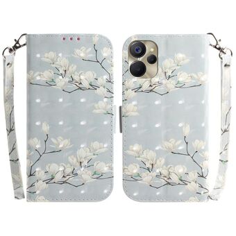 Θήκη τηλεφώνου δερμάτινη, οριζόντια, αναδιπλούμενη, με έγχρωμο 3D σχέδιο για Realme 9i 5G (Μαγνολία)