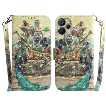 Θήκη τηλεφώνου δερμάτινη, οριζόντια, αναδιπλούμενη, πολύχρωμη 3D για Realme 9i 5G (Ζωολογικός κήπος)