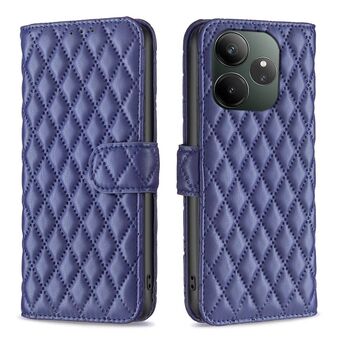 Θήκη τηλεφώνου τύπου πορτοφολιού με δερμάτινη επένδυση και σχέδιο διαμαντέντης πλέγματος για Realme GT 6 / GT 6T (Μπλε)
