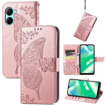 Θήκη τηλεφώνου από δέρμα με ανάγλυφο σχέδιο πεταλούδας και λουλουδιών για OPPO Realme C33 (Χρυσό Ροζ)