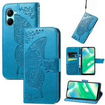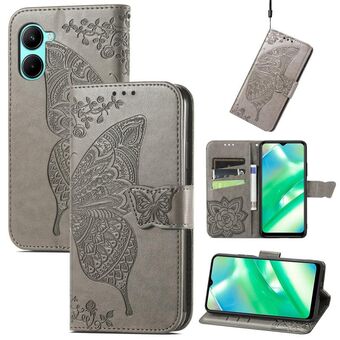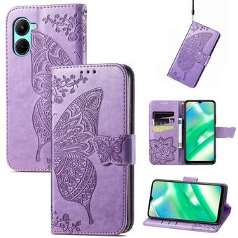 Θήκη τηλεφώνου από δέρμα με ανάγλυφο σχέδιο πεταλούδας και λουλουδιών για OPPO Realme C33 (Λεβάντα)