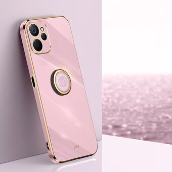 Θήκη τηλεφώνου Realme 9i 5G XINLI με ευθείες άκρες, 6D επιμετάλλωση TPU με δακτύλιο στήριξης (Μαύρο)