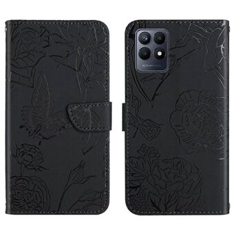 Θήκη τηλεφώνου από δέρμα με ανάγλυφο σχέδιο πεταλούδας και παιωνίας, με αίσθηση δέρματος, για OPPO Realme Narzo 50 4G (Μαύρο)