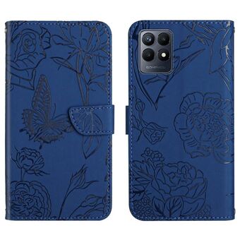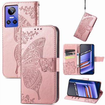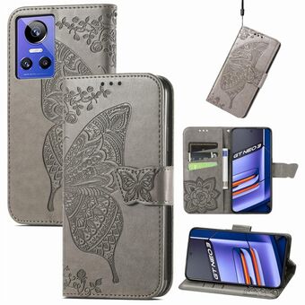 Θήκη τηλεφώνου από δέρμα με ανάγλυφο σχέδιο πεταλούδας και λουλουδιών για Realme GT Neo 3 (Μπλε)