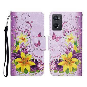 Θήκη τηλεφώνου από δέρμα με σχέδιο πολύχρωμης ζωγραφικής για OPPO A96 4G / Realme 9i (Φωτεινή Πεταλούδα)