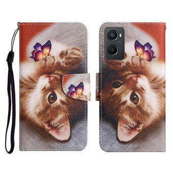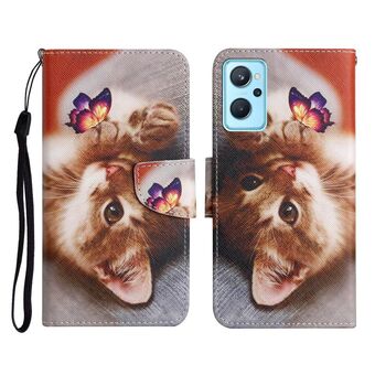 Θήκη τηλεφώνου από δέρμα με σχέδιο πολύχρωμης ζωγραφικής για OPPO A96 4G / Realme 9i (Πεταλούδα Γάτα)