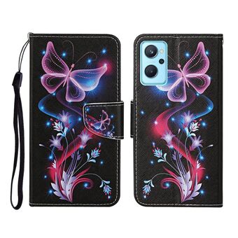 Θήκη τηλεφώνου από δέρμα με σχέδιο πολύχρωμης ζωγραφικής για Realme 9i (Φωτεινή Πεταλούδα)