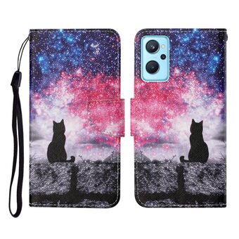Θήκη τηλεφώνου από δέρμα με σχέδιο αναδιπλούμενου πολύχρωμου σχεδίου για Realme 9i (Γάτα με Αστρικό Ουρανό)
