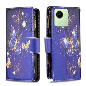 Θήκη τηλεφώνου από δέρμα με φερμουάρ και πολύχρωμο σχέδιο για Realme C30 (Μεγάλη Πεταλούδα)