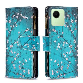 Θήκη τηλεφώνου από δέρμα με φερμουάρ και σχέδιο ζωγραφικής για Realme C30 (Λουλούδι Δαμασκηνιάς)