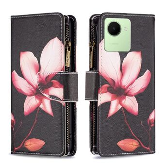 Θήκη τηλεφώνου από δέρμα με φερμουάρ και πολύχρωμο σχέδιο για Realme C30 (Λωτός)