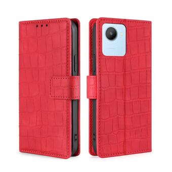 Θήκη τηλεφώνου από δέρμα με μαγνητικό κούμπωμα και υφή κροκόδειλου για OPPO Realme C31 (Μαύρο)