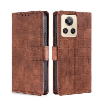 Θήκη τηλεφώνου από δέρμα με μαγνητικό κούμπωμα για Realme GT2 Explorer Master, αίσθηση κροκόδειλου (Καφέ)