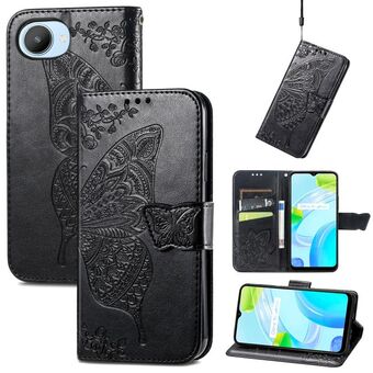 Θήκη τηλεφώνου Realme C30 Butterfly Love Flower Embossed Flip Leather (Μαύρο)