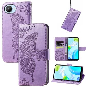 Θήκη τηλεφώνου από δέρμα με φερμουάρ και πολύχρωμο σχέδιο για Realme C30 (Μωβ Πεταλούδα)