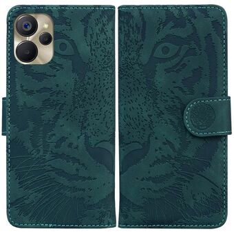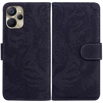 Θήκη τηλεφώνου Realme 9i 5G με δερμάτινη κατασκευή, οριζόντιο άνοιγμα και ανάγλυφο σχέδιο τίγρης (Μαύρο)