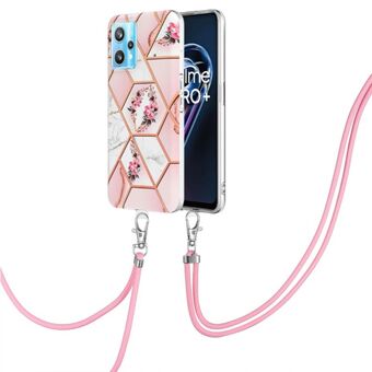 Θήκη τηλεφώνου TPU με σχέδιο μαρμάρου και λουλουδιών σε κομμάτια για OPPO Realme 9 Pro+ 5G με κορδόνι (Ροζ Λουλούδι)