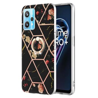 Θήκη για OPPO Realme 9 Pro+ 5G, από TPU με σχέδιο μαρμάρου και λουλουδιών σε patchwork, με δακτύλιο στήριξης (Ροζ Λουλούδι)