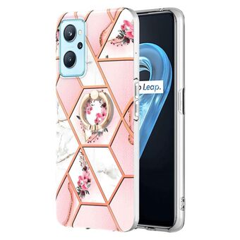 Θήκη για OPPO Realme 9 Pro 5G, από TPU με σχέδιο μαρμάρου και λουλουδιών σε patchwork, με δακτύλιο στήριξης (Ροζ Λουλούδι)