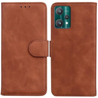 Θήκη τηλεφώνου από δέρμα με αναδιπλούμενο καπάκι, αίσθηση δέρματος, καθαρό χρώμα για OPPO Realme 9 Pro (Καφέ)