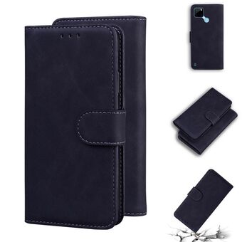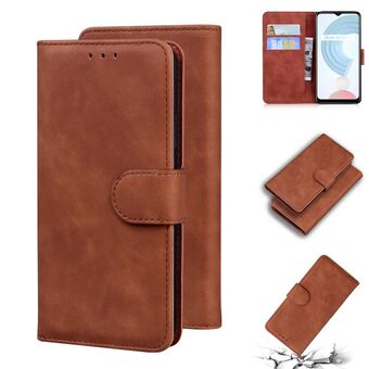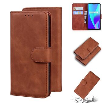 Θήκη τηλεφώνου από δέρμα με καθαρό χρώμα και αίσθηση δέρματος για OPPO Realme C21 (Καφέ)