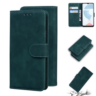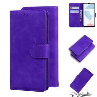 Θήκη τηλεφώνου από δέρμα με αναδιπλούμενο καπάκι και αίσθηση δέρματος, σε καθαρό χρώμα για OPPO Realme C21Y (Μωβ)