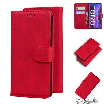 Θήκη τηλεφώνου από δέρμα με αναδιπλούμενο καπάκι, αίσθηση δέρματος, καθαρό χρώμα για OPPO Realme 7 Pro (Μωβ)