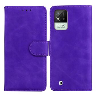 Θήκη τηλεφώνου από δέρμα με αίσθηση δέρματος και καθαρό χρώμα, τύπου flip, για OPPO Realme Narzo 50i (Μωβ)