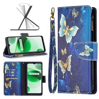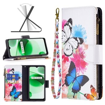 Θήκη τηλεφώνου από δέρμα με φερμουάρ και πολύχρωμο σχέδιο για OPPO Realme C35 (Δύο Πεταλούδες)