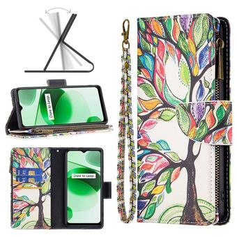 Θήκη τηλεφώνου από δέρμα με φερμουάρ και πολύχρωμο σχέδιο για OPPO Realme C35 (Big Tre)