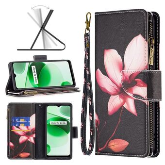 Θήκη τηλεφώνου από δέρμα με φερμουάρ και πολύχρωμο σχέδιο για OPPO Realme C35 (Λωτός)