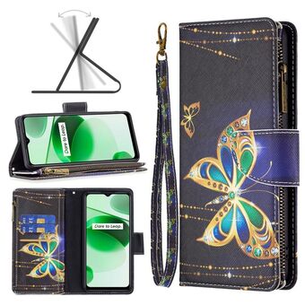 Θήκη τηλεφώνου από δέρμα με φερμουάρ και σχέδιο ζωγραφικής με χρώματα για OPPO Realme C35 (Μεγάλη Πεταλούδα)