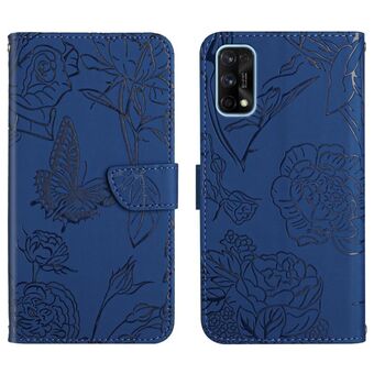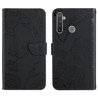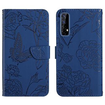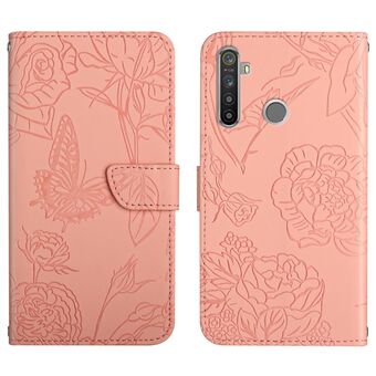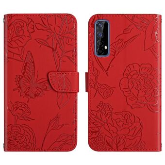 Θήκη τηλεφώνου από δέρμα με ανάγλυφο σχέδιο πεταλούδας και παιώνιας για OPPO Realme 7 (Κόκκινο)